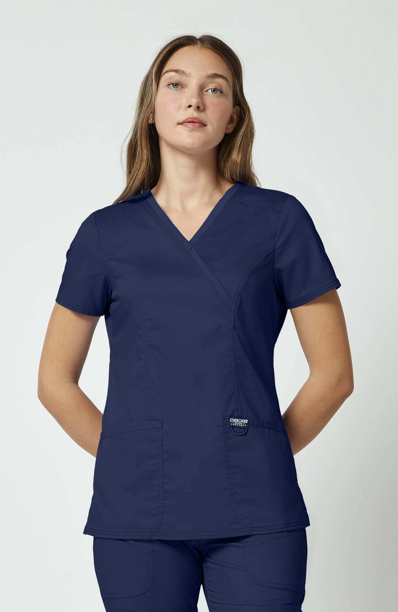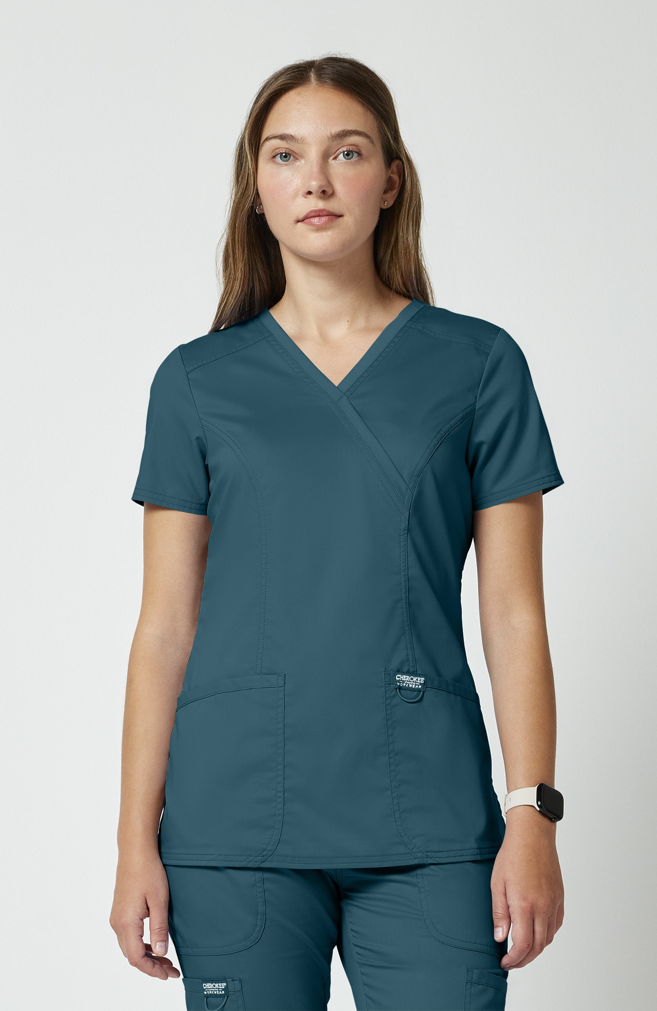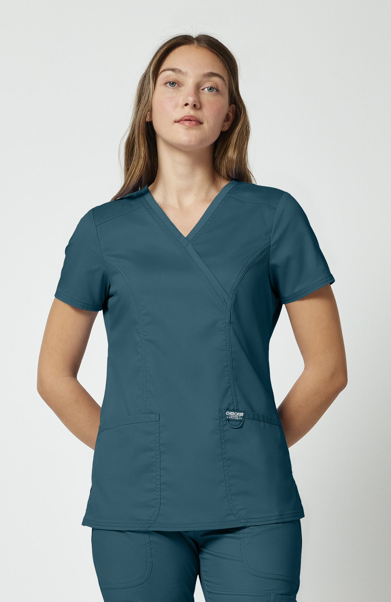 Медицинский топ Cherokee WW Revolution WWE610 доступен в 11 цветах и размерах, которые можно подобрать по таблице размеров. Этот топ можно сочетать с медицинскими брюками Cherokee WW Revolution WWE110 и WWE105.