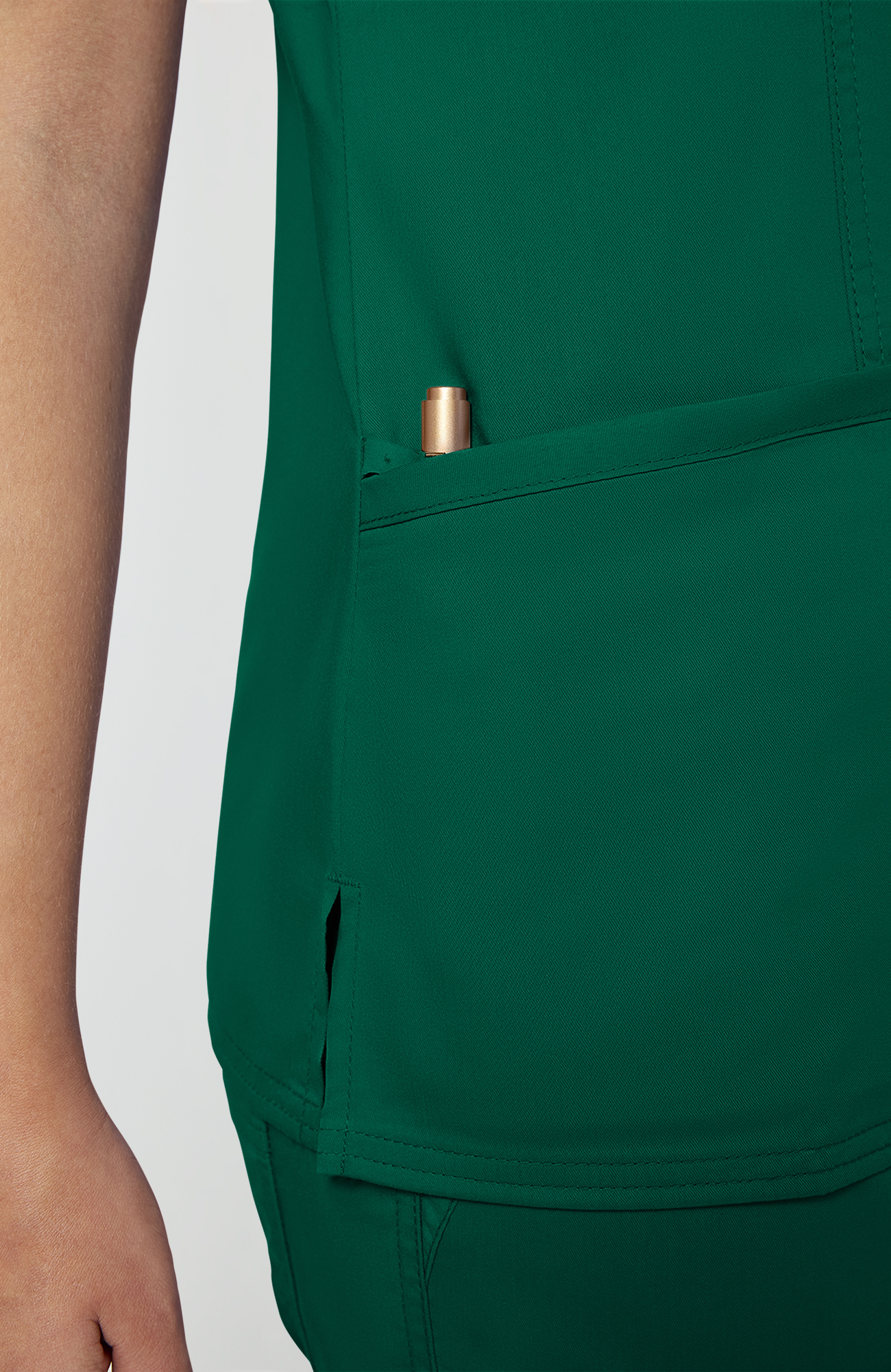 Медицинский топ Cherokee WW Revolution WWE610 - это идеальный выбор для современных медицинских работников, которые ценят комфорт, качество и стиль. Этот топ имеет классический дизайн с V-образным вырезом, коротким рукавом и двумя накладными карманами спереди. Топ выполнен из инновационной ткани Revolution, которая состоит из 78% полиэстера, 20% вискозы и 2% спандекса. Эта ткань обладает высокой эластичностью, не мнется, сохраняет цвет и очень приятна к телу. Также ткань обработана ионами серебра, которые убивают бактерии и грязь на поверхности ткани. Топ имеет петлю для инструментов на одном из карманов и логотип Cherokee на кармане. На спинке два вертикальных шва придают топу женственный силуэт. По бокам есть вентиляционные отверстия для лучшей циркуляции воздуха. Длина центральной части спины составляет 27 см.